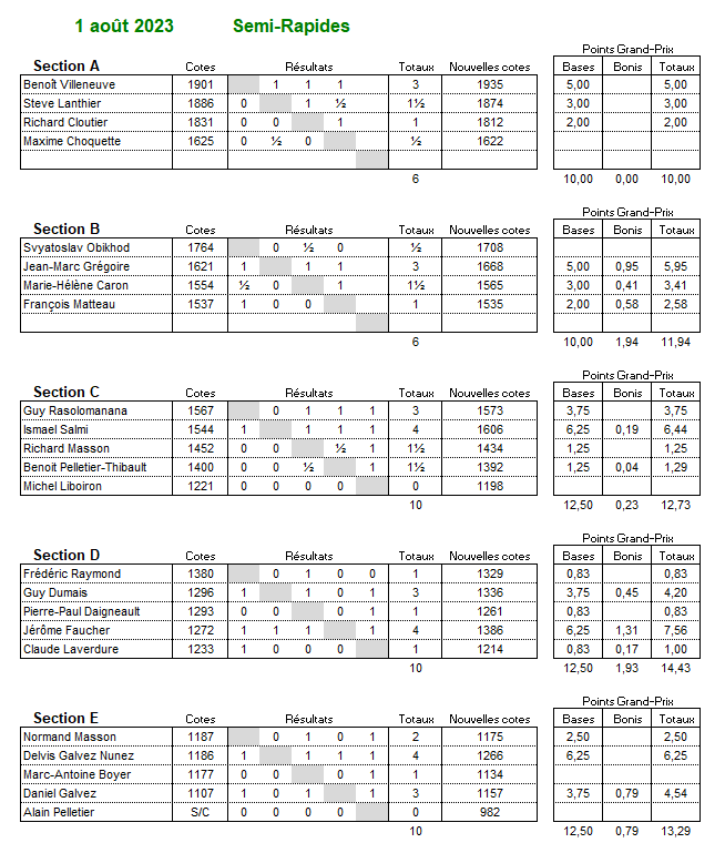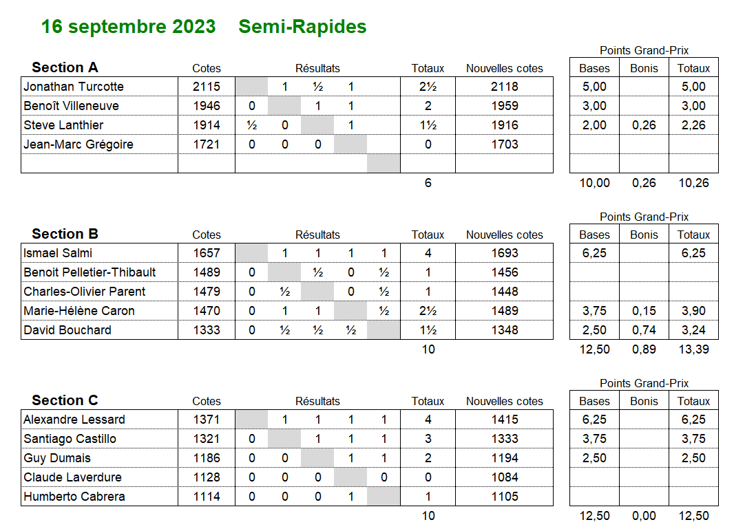 | 3 | Claude Lalumière | 1919 | +7 | +4 | -1 | +6 | 3 | 1928 |